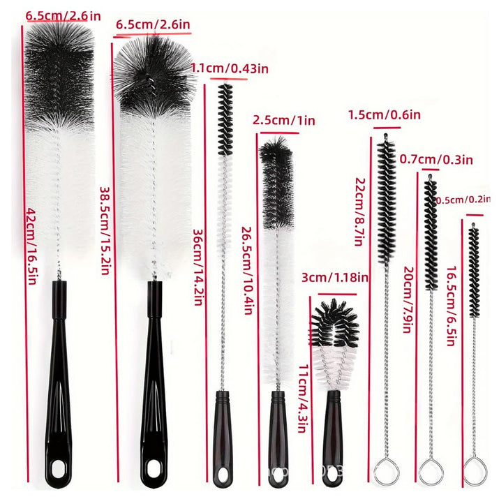8-Piece Bottle Brush Set – Multi-Size Cleaning Brushes for Glasses, Wine, Kettles, Bottles & Test Tubes.